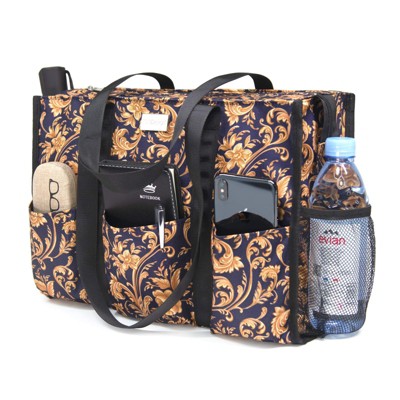 Narwey Utility Water Resistant Tote Bag with 13 Exterior & Interior Pockets, Top Zipper Closure