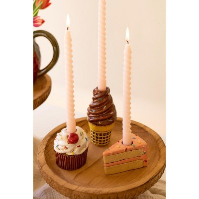 Storied Home Tall Cast Metal Flower Shaped Taper Holder, Pink