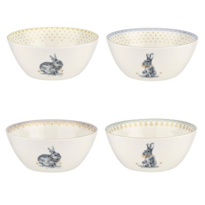 Spode Meadow Lane Cereal Bowls - Set of 4, Bunny Illustration with Gold Accent, Easter & Spring Table Decor - 6 Inch Assorted Pastel Porcelain Bowls