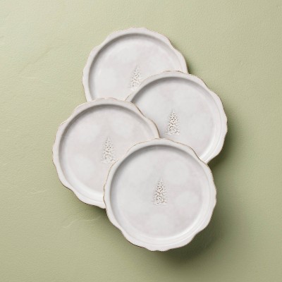 Set of 4 7" Stoneware Carved Ribbed Edge Appetizer Plate Tree Icon - Hearth & Hand™ with Magnolia