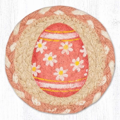 Earth Rugs Pink Egg Round Coaster – Braided Jute, Spring Easter Decor Accent, 5"x5"