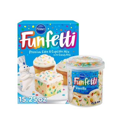 Pillsbury Funfetti 15.25oz Premium Cake and Cupcake Mix + 15.6oz Vanilla Flavored Frosting