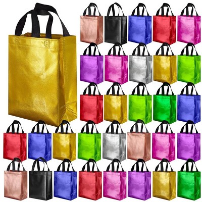 Wrapables Christmas Reusable Gift Bags, Glossy Non-Woven Bags with Handles for Holiday Gift Wrap, Weddings, Parties (Set of 8), Gold