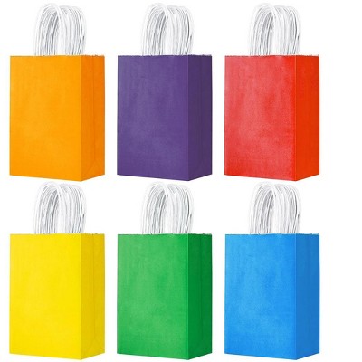 Aoibox 32 Pack Kraft Paper Gift Bags 6 Colors 6.3 x 3.15 x 8.66 Inch with Handles Reusable Rainbow Party Favor Bags for Birthday Wedding