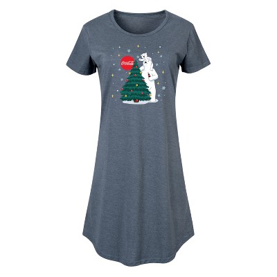 Women's Coca-Cola Christmas Tree Graphic T-shirt Dress - Heather Blue - Large