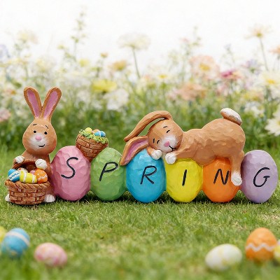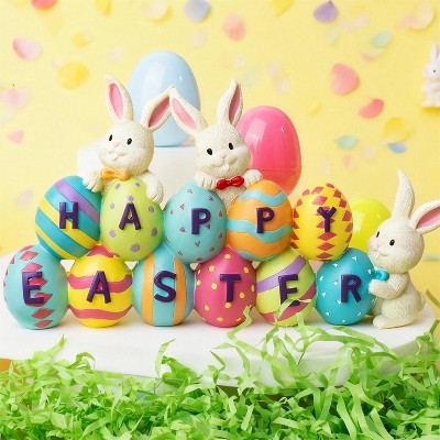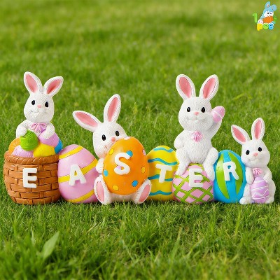 Joyfy Easter Resin Tabletop Decoration, Easter Bunny Egg Centerpiece Indoor Decoration for Easter Party Home and Office Tabletop Decoration