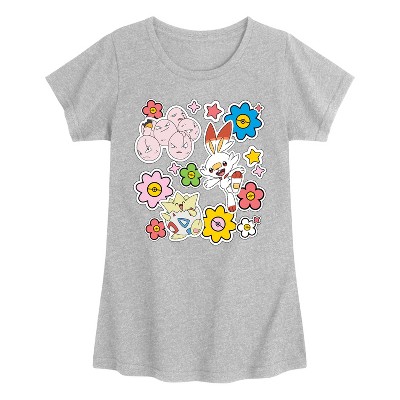 Girls' - Pokémon - Spring Stickers Fitted Short Sleeve Graphic T-Shirt