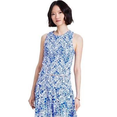 Tommy Hilfiger Womens Floral Smocked Tank Top
