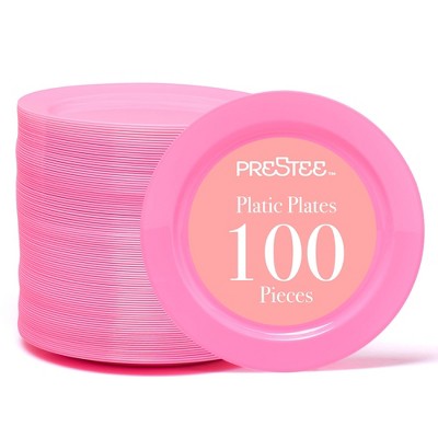 Prestee Pink Plastic Plates 6.25" – 100 Pack Disposable Party Plates for Wedding, Events, Parties