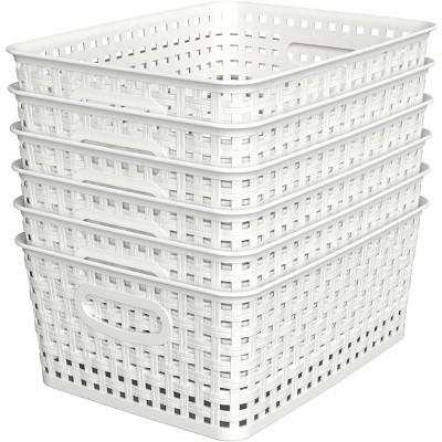 Aoibox Woven Plastic Storage Baskets Organizer 6 Pack White Weave Bins for Home Kitchen Bathroom 10.1x7.55x4.1 inch