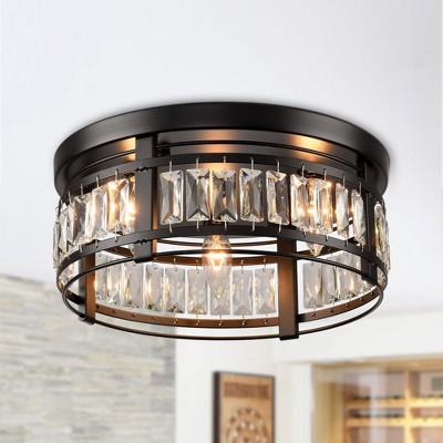 Parrot Uncle 13.4” Modern Black Crystal Flush Mount Ceiling Light