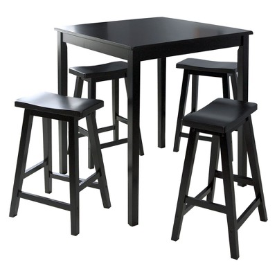 Buylateral 5pc Belfast Counter Height Square Dining Set with 4 Saddle Stools Black