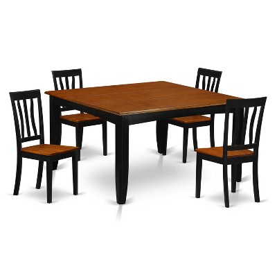 HomeStock 5-Piece Square Black and Cherry Finish Solid Wood Top Dining Table with 4 Chairs