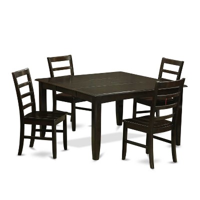 HomeStock 5-Piece Square Cappuccino Finish Solid Wood Top Dining Table with 4 Chairs