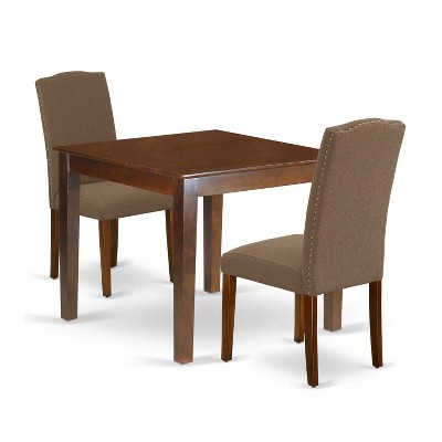 Coastal Dining Set 3Pc Square Table & 2 Parson Chairs - Linen Fabric, Dark Coffee Finish