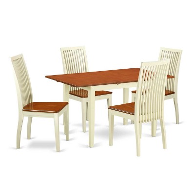 HomeStock 5-Pc Buttermilk and Cherry Solid Wood Top - Dining Room Set - Seats 4