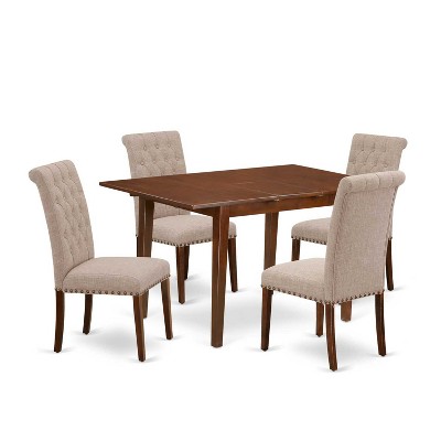 5-Piece Mahogany Finish Solid Wood Top - Rectangular Dining Room Set - Seats-4