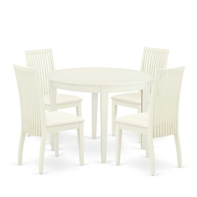 5-Piece Linen white Solid Wood Top - Round Dining Room Set - Seats 4