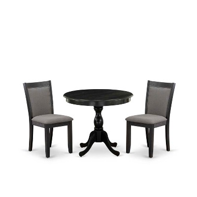 3-Piece Black Finish Solid Wood Top-Round Dining Room Set -Seats 4