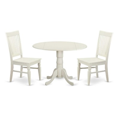 3-Piece Linen White Finish Solid Wood Top - Dining Room Set - Seats 4