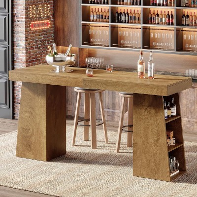 Lantine 63-Inch Long Bar Table with Storage, Counter Height Pub Table Home Bar Unit with Storage Shelves for Dining Room, Coffee Corner, Bistro