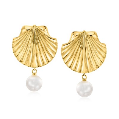 Ross-Simons 8-8.5mm Cultured Pearl Bead and Chain Drop Earrings in 14kt Yellow Gold