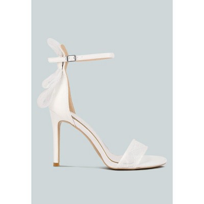 Perphy Women's Glitter Mesh Bow Chunky High Heel Slingback Ankle Strap Sandals