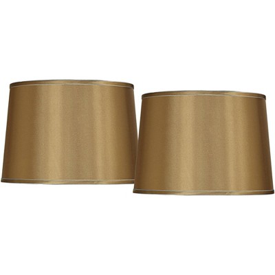Springcrest Set of 2 Drum Lamp Shades Satin Gold Medium 14" Top x 16" Bottom x 11" High Spider Replacement Harp and Finial Fitting
