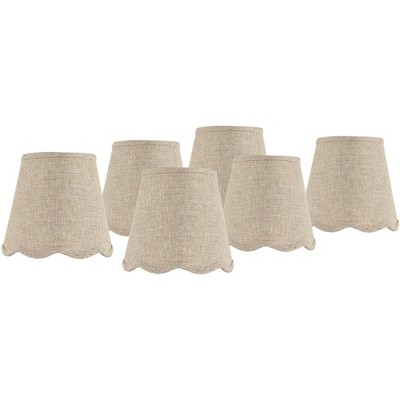 Springcrest 4" Top x 6" Bottom x 5 1/2" High x 5 1/2" Slant Lamp Shade Replacement Set of 6 Small Fawn Brown Bell Modern Scalloped Clip On Candelabra