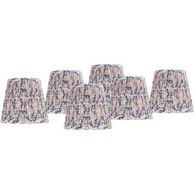 Springcrest Blue Pink Shirred 4" Top x 6" Bottom x 5 1/2" High x 5 1/2" Slant Print Lamp Shades Replacement Set of 8 Small Blue Clip On Candelabra