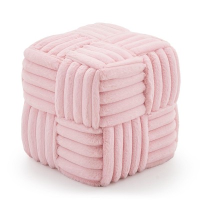 SEVOBAL Ottomans and Benches Square Corduroy Vanity Stool with Padded Woven Footrest for Living Room and Entryway, Pink, 15.75"*15.75"*15.75"