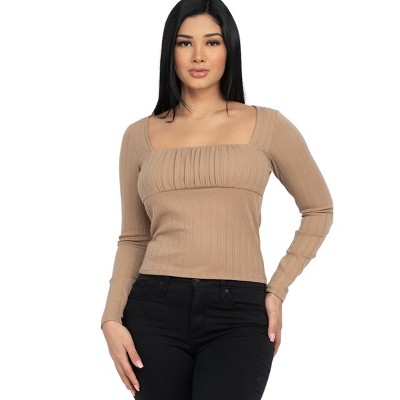 Women's Boat Neck Ribbed T-Shirt - A New Day™ Brown