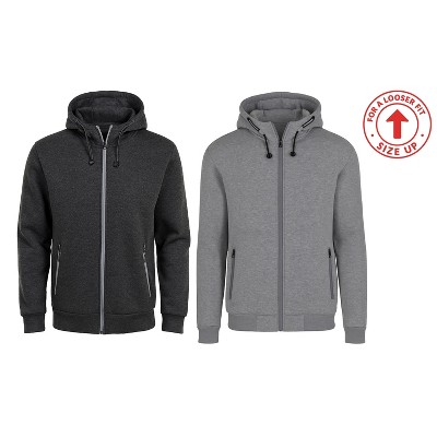 Blu Rock Men's Slim Fit Faux Shearling Fleece Lined Classic Tech Full Zip Hoodie -2 Pack