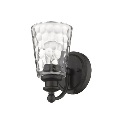 Toltec Lighting Capri 1 - Light Sconce in Matte Black with 7" Diamond Peak Art Glass Shade