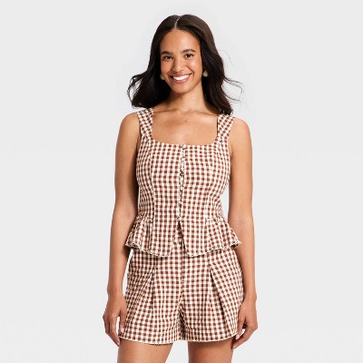 Women's Square Neck Peplum Tank Top Low-Back Slim-Fit Ruffle Hem Blouse