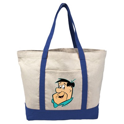 Flintstones Fred Headshot Canvas Tote Bag With External Pocket, Reusable Shoulder Bag for Shopping, School, Beach, Royal