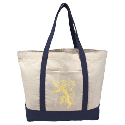 Game of Thrones Lanister Sigil Canvas Tote Bag With External Pocket, Reusable Shoulder Bag for Shopping, School, Beach, Navy