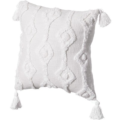 16" Handwoven Cotton Throw Pillow Cover with White Tufted Patterns and Tassel Corners, with Insert