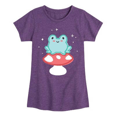 Girls' - Instant Message - Frog On Mushroom Fitted Short Sleeve Graphic T-Shirt