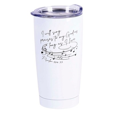 Dicksons SSTUMW-154 Classic White 20 Ounces Stainless Steel Travel Tumbler Mug with Lid, I Will Sing Praises