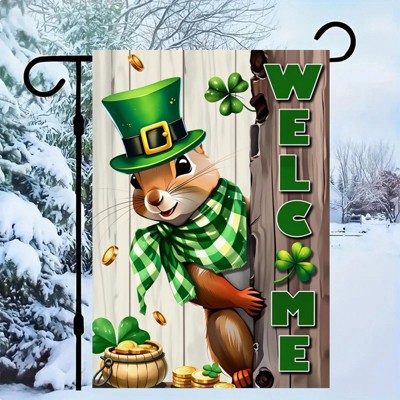 Spring St Patricks Day Garden Flag Burlap The Squirrel Lucky Shamrock Garden Flags Happy St. Patrick's Day Single Sided 12x18in