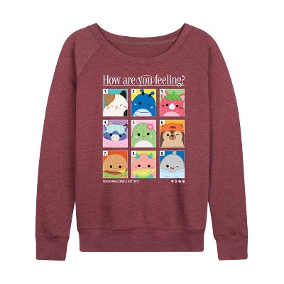 Women's - Squishmallows - Rainbow Circle Group Lightweight French Terry Wide Neck Long Sleeve Graphic Shirt