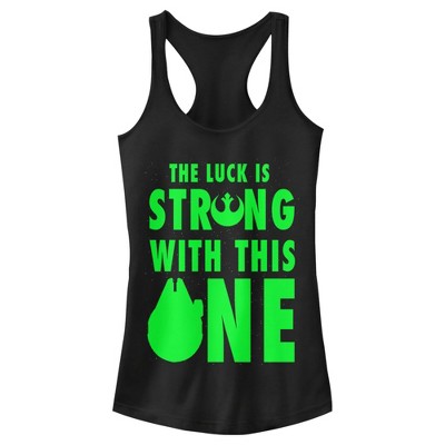 Juniors Womens Star Wars St. Patrick's Day Luck is Strong Falcon Racerback Tank Top