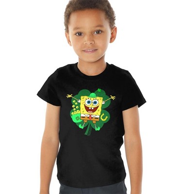 Spongebob Squarepants St. Patrick'S Day Spongey Four Leaf Clover Toddler T-Shirt Black