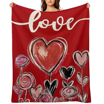 Valentine's Day Red Painted Heart Love Throw Blanket - Ultra Soft, Anti-Pilling for Couch & Gifting 40x50 inches