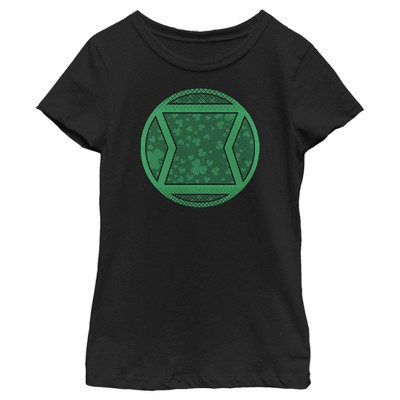 Girl's Marvel Black Widow St. Patrick's Day Clover Black Widow Logo T-Shirt