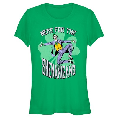Juniors Womens Batman St. Patrick's Day Joker Here for the Shenanigans T-Shirt