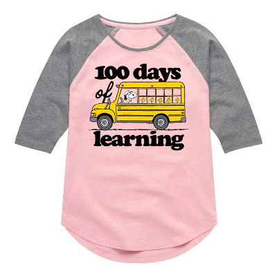 Girls' - Peanuts - 100 Days Of Learning Fitted Short Sleeve Graphic T-Shirt