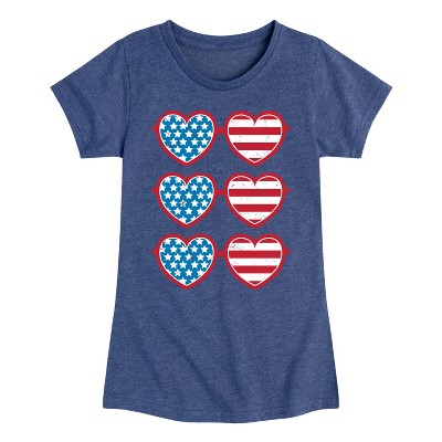Girls' - Instant Message - Retro Sunglasses American Flag Fitted Short Sleeve Graphic T-Shirt