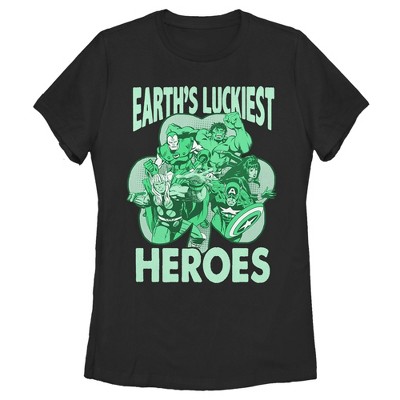 Juniors Womens Marvel Avengers St. Patrick's Day Earths Luckiest Heroes T-Shirt